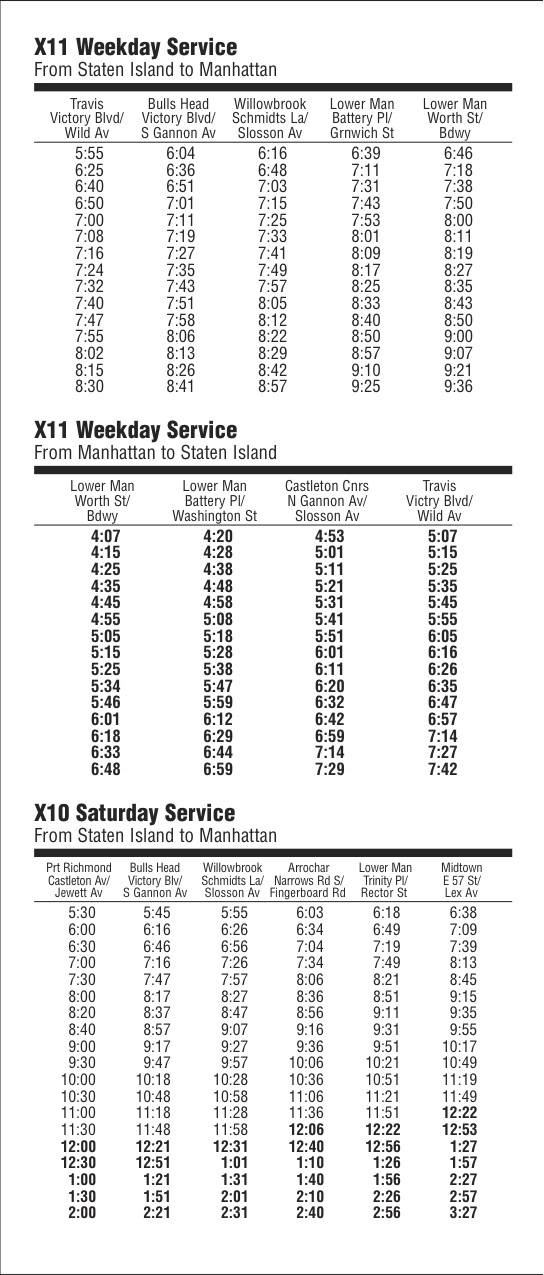 There are 8 buses that stop at the property that go to the Staten Island Ferry, directly to Wall St and Midtown Manhattan, as well as to Brooklyn and the New York City subway. The express buses to Manhattan take approximately 50 minutes.